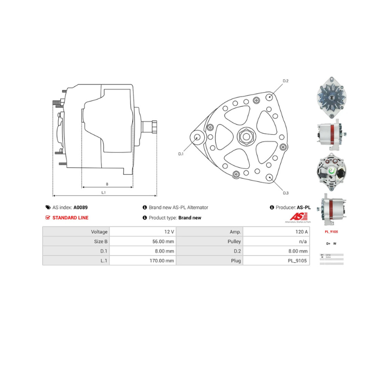 ALTERNADOR 12V 120A CHEVROLET LUV 2.3 JOHN DEERE 16481K