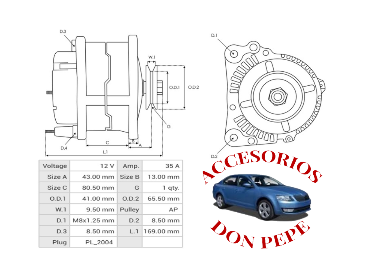APLICACIÓN: GRUA NISSAN, GRUA TCM FG20, CON ALTERNADOR MITSUBISHI 12V., 35AMP., ENCHUFE 2 PINES PARALELOS, SEÑALES L – S, 12136N, 112068, A007T03371, A007T03371A, A007T03371AC, LESTER 12136, ANCLAJE 80MM, TENSOR 155MM