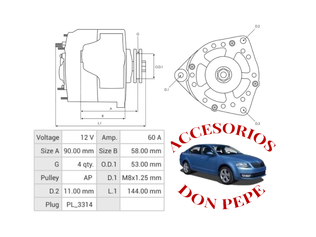 ALTERNADOR 12V 55A TOYOTA COROLLA-CELICA