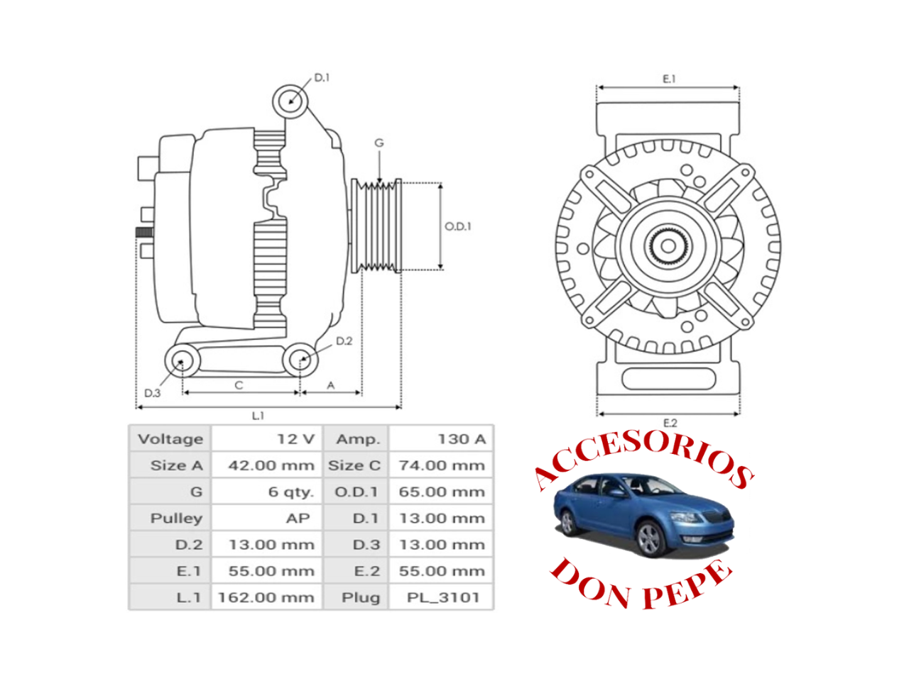 APLICACIÓN: FORD EXPLORER 4.0 6 CIL.1993>FORD E SERIE VAN 5.0 5.8 V8, FORD 7.3 V8, CON ALTERNADOR MOTORCRAFT SERIE 3G 12V 130AMP.POLEA 6PK 41148 F2PU-10346AF 111200 20-228-11-2(7768N-6S66)ALTERNATOR – FORD 3G SERIES IR IF130 AMP 12 VOLT, CW, 6-GROOVE 66MM OD PULLEY, 02 30 PLUG CLOCK USED ON (1996-93) FORD E SERIES VAN 5.0L, 5.8L(2001-92) FORD E SERIES VAN 7.3L(1994-93) FORD EXPLORER 4.0L(1995-92) FORD F SERIES PICKUP 7.3L REPLACES FORD F37U-10300-AA; F3UU-10300-AE, -AF; F6UU-10300-CA LESTER NOS 7768 WAI REF NOS 1-1613-11FD COMPONENTS 24-2257 PULLEYF794 (35-204) I-S-A REGULATOR FEATURES 100% NEWWAI-TRANSPO RECTIFIER FEATURES 13MM PRESS-FIT DIODES W CRIMP-WELD DIODE TERMINATIONSWAI-TRANSPO REGULATOR FEATURES HIGH AMP MOSFET FIELD TRANSISTORPREMIUM, HI-TEMPERATURE WBD BEARINGSHI-TEMPERATURE CLASS-H WINDINGSPRECISION CNC MACHINED CASTINGSOE PERFORMANCE OUTPUT CURVE