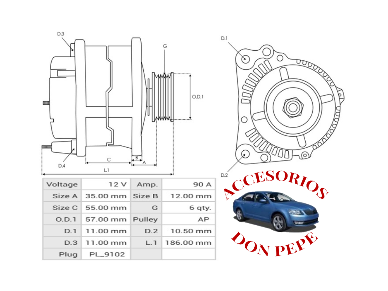EQUIVALENCIA: UD90205A, 04557301, 5234026, 5234027, 5234028, 5234029, 5234031, 5234032, 53008647, 56005684, 56005685, 56005685AB, 56027912, RL005685AB, 121000-3390, A0091544202, CAL40272, CAL40272AS, CAL40272ES, CAL40272GS, CAL40272OS, CAL40272RS, 50960, 2040272, STX100379, STX100379R, STX100403, STX100403R