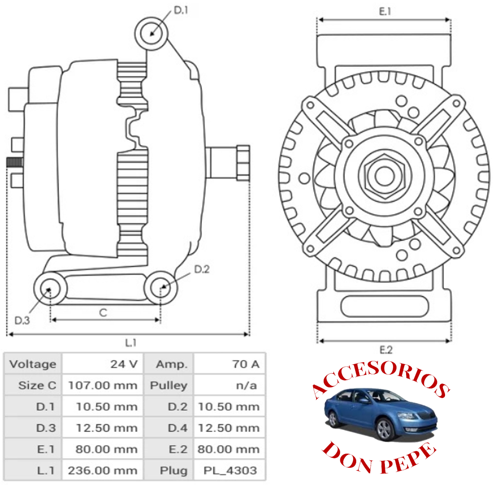 ALTERNADOR DELCO 24SI 24V 70A
