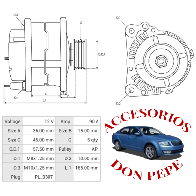 APLICACIÓN: OEM 37300-03805 37300-03355 37300-03800 ALTERNADOR VALEO 12V 90AMP HYUNDAI I10 I20 I30 ACCENT KIA RIO ANCLAJE 47MM, TENSOR 168MM, POLEA 5PK