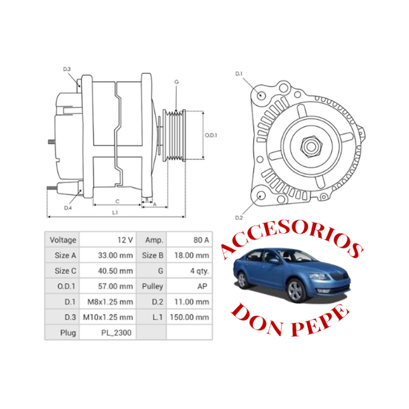 APLICACIÓN: TOYOTA YARIS 1.5 – VIOS ALTERNADOR DENSO 12V 80AMP POLEA 4PK KONIGMANN KAL1067 ENCHUFE 2 PINES
