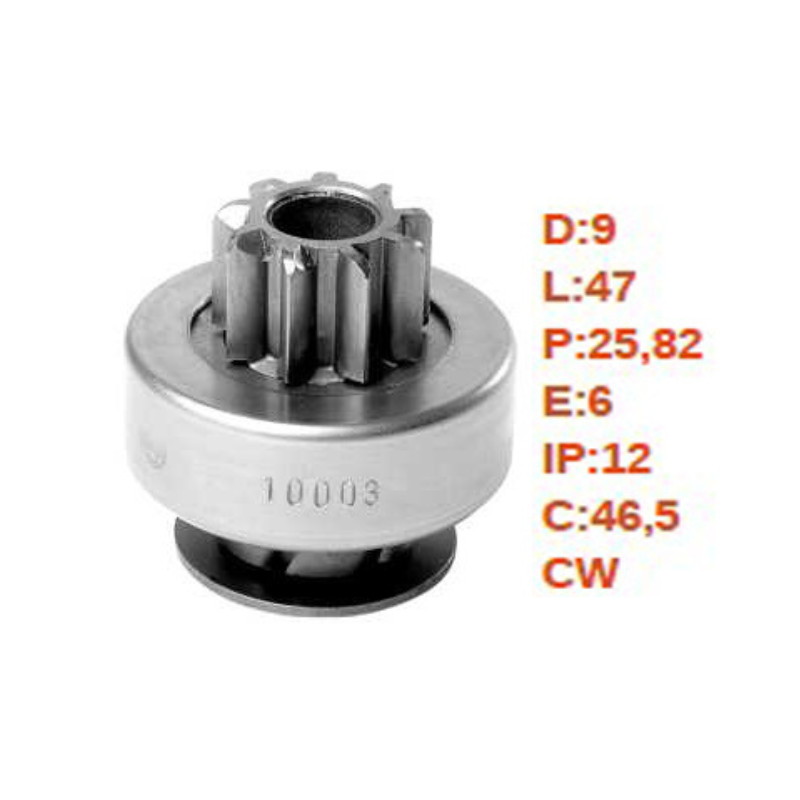 CHEVROLET ASTRA 1.8 2.0, CORSA 1.8, BLAZER 2.2 2.4, CHEVROLET S10 2.2 2.4 VECTRA 2.2, ZAFIRA 2.0, FIAT STRADA 1.8, CON ARRANQUE DELCO REMY 9 DIENTES 6 ESTRIAS 47 LARGO 25.8 DIAMETRO PIÑON CW. 10003 1.01.0952.1 10504515, 54-173