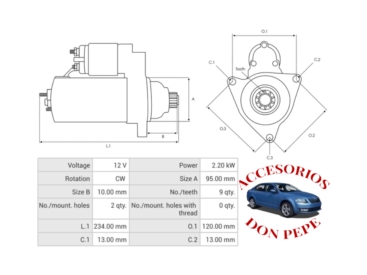 APLICACIÓN: MOTOR DE PARTIDA 12V, 2.2KW, CW, 9 DIENTES, GRUA HYSTER H45XM, H50XM, H60XM, H65XM MOTOR ISUZU C240 4JG2 WAI 18449N DENSO