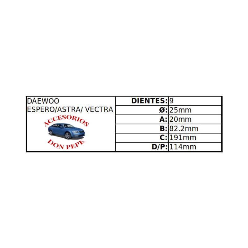 EQUIVALENCIA: S0126 0001107015 0001107044 0986016280 B001110042 111698 9000794 9000817 9000824 DRS3548 DRS3548N DRS6280 DRS6280N 1202000 1202010 1202100 1202125 1202130 1202138 1202144 1202958 90444193 90458462 90512188 90518628 436034 438014 455736 D6RA82 ND170 17857N STR50054 MBO23 MDE101 APLICACION: DAEWOO Espero 1.8 DAEWOO Espero 2 CHEVROLET Astra F 1.6 CHEVROLET Astra F 1.6 i CHEVROLET Astra F 1.8 i CHEVROLET Astra F 2.0 GSi 16V CHEVROLET Astra F 2.0 i CHEVROLET Astra F 2.0 i 16V CHEVROLET Vectra A 1.8 i CHEVROLET Vectra A 1.8 S CHEVROLET Vectra A 2.0 i CHEVROLET Vectra A 2.0 i CHEVROLET Vectra B 1.6 i CHEVROLET Vectra B 2.0 i