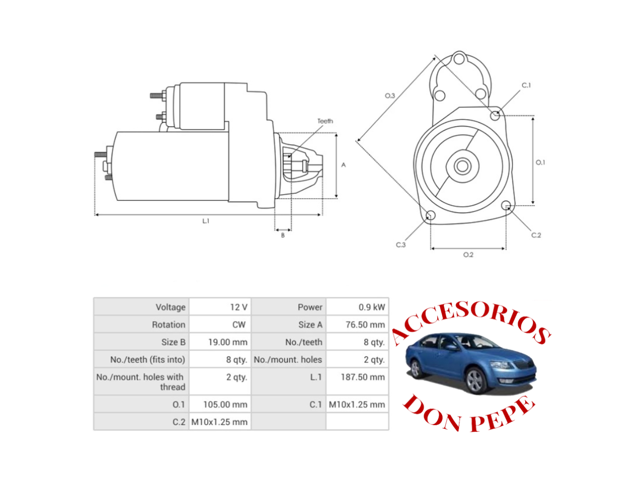 APLICACIÓN: HYUNDAI LAVITA, ACCENT PRIME, KIA RIO 1.4, 1.6, CON ARRANQUE MANDO – VALEO KOREA 12V. ( 8 DIENTES, CW, GUIA=77MM, ANCLAJE 105MM ), 36100-22805, 36100-22800, 33805, 36100-26810, 113659, TM000A37201, 8000395, LESTER 17827