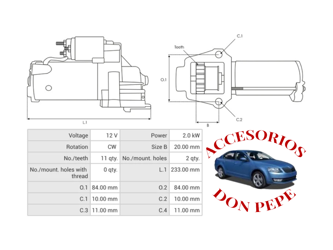 APLICACIÓN: MOTOR DE PARTIDA DELCO 12V, 1.4KW, CW, PG260G, PMGR, 11 DIENTES, DP 29MM, CHEVROLET 99>04, GMC 99>04, ISUZU 99>00, OLDSMOBILE 99>01