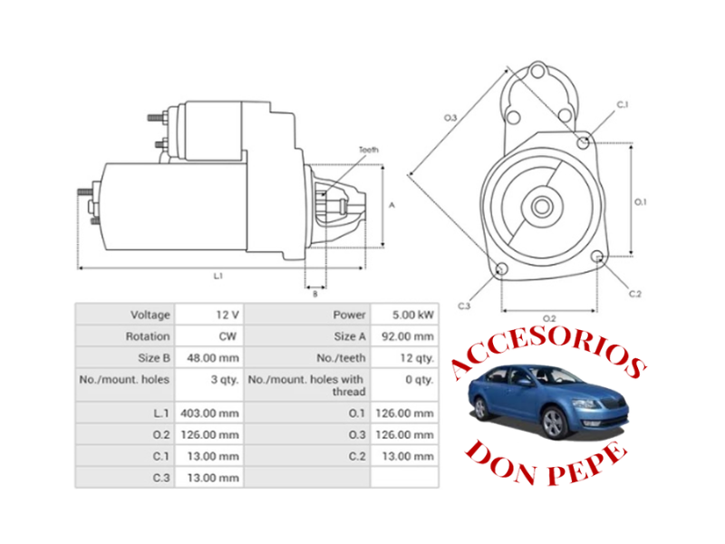 APLICACIÓN: 37MT – 12V 5KW – T12 G46 CW – BOCA 92 – International, CUMMINS, CLARK, FORD CARGO, VW