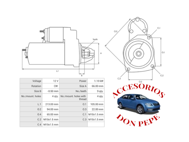 APLICACIÓN: RENAULT CLIO 1.2, 1.4, 1.4I 1990>CLIO 1.6I 1998> CLIO 1.8 16V 1991> RENAULT EXPRESS 1.1, 1.2, 1.4, 1.4I 1991> KANGOO 1.4I 1997> LAGUNA 1.8 COLD CLIMATE, LAGUNA 2.0 1993>94 MEGANE 1.4I, 1.6E, 2.0I, 2.0 16V 1995>96, RENAULT 19 1721CC., 1724CC, CON ARRANQUE VALEO – MITSUBISHI PMGR, 10 DIENTES, REDUCTOR. 015-018, 111251, 015-148, 30177, MOTOR DE PARTIDA