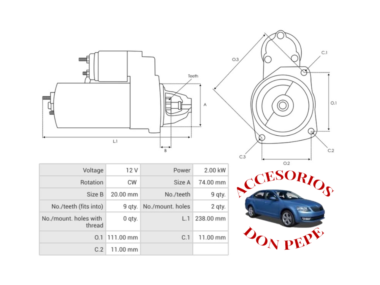 APLICACIÓN: MOTOR DE PARTIDA 12V, 2.0KW, CW, 9 DIENTES, ANCLAJE 110MM, GUIA 74MM, DIAMETRO DE PIÑON 29MM, RETRO EXCAVADORA MOTORES PERKINS, BOSCH 0001109035 PERKINS 18508660 WAI 18949N 2-2553-BO