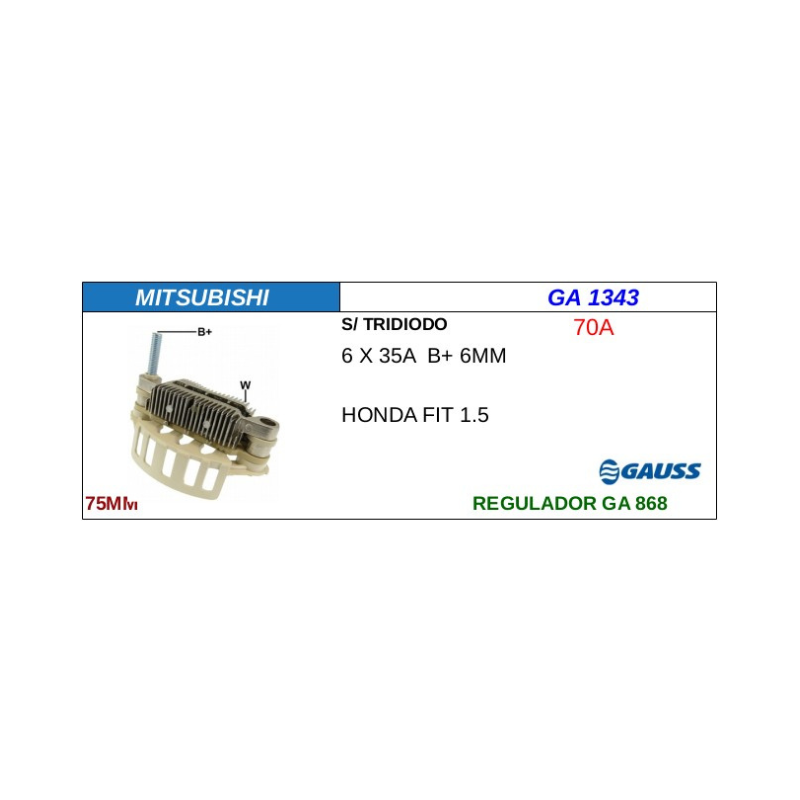 RECTIFICADOR 70A 75mm HONDA/FIAT 1.5 GA1343